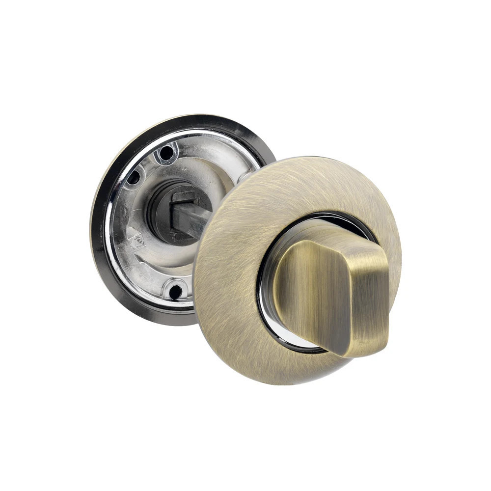 Toalett, illetve fürdőszoba ajtóknál gyakori kialakítás. Ebben az esetben az egyik rozettán egy fordítógomb található, amely segítségével egy mozdulattal bezárható az ajtó. A zárat az ajtó túloldaláról is ki lehet nyitni egy pénzérme, vagy bármilyen lapos tárgy segítségével.